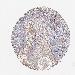 Antibody staining in the annotated cell types in the current human tissue is reported as not detected, low, medium, or high, based on conventional immunohistochemistry profiling in selected tissues. This score is based on the combination of the staining intensity and fraction of stained cells.