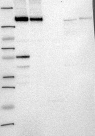 A Western blot analysis is performed on a panel of human tissues and cell lines to evaluate antibody specificity. For antibodies with unreliable result a revalidation using an over-expression lysate is performed.