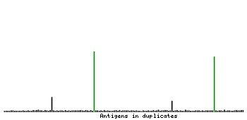 At the top of the view, the position of the antigen (identified by the corresponding HPA identifier) is shown as a green bar. A yellow triangle on the bar indicates a <100% sequence identity to the protein target.