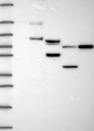 A Western blot analysis is performed on a panel of human tissues and cell lines to evaluate antibody specificity. For antibodies with unreliable result a revalidation using an over-expression lysate is performed.