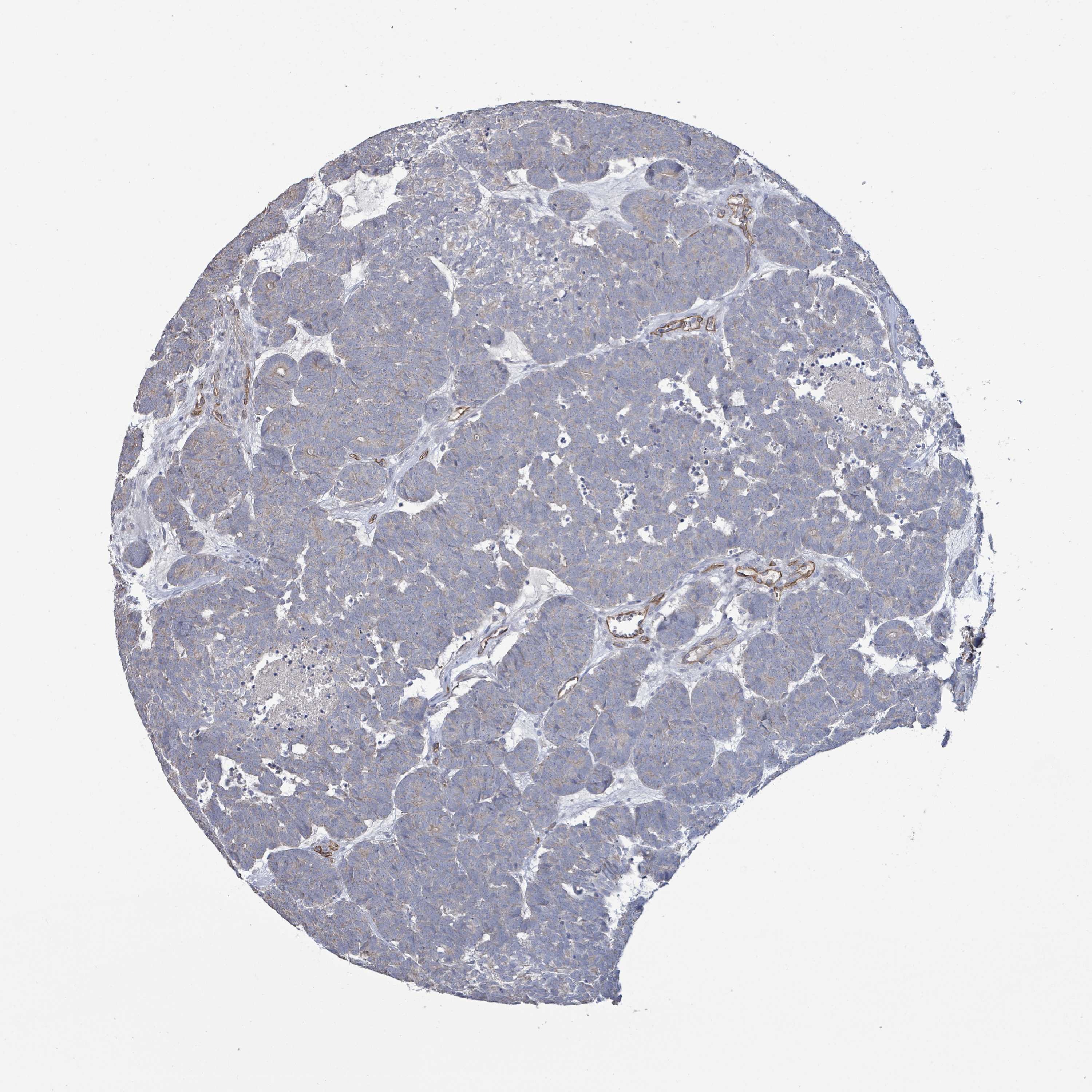 Antibody staining in the annotated cell types in the current human tissue is reported as not detected, low, medium, or high, based on conventional immunohistochemistry profiling in selected tissues. This score is based on the combination of the staining intensity and fraction of stained cells.
