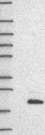 A Western blot analysis is performed on a panel of human tissues and cell lines to evaluate antibody specificity. For antibodies with unreliable result a revalidation using an over-expression lysate is performed.