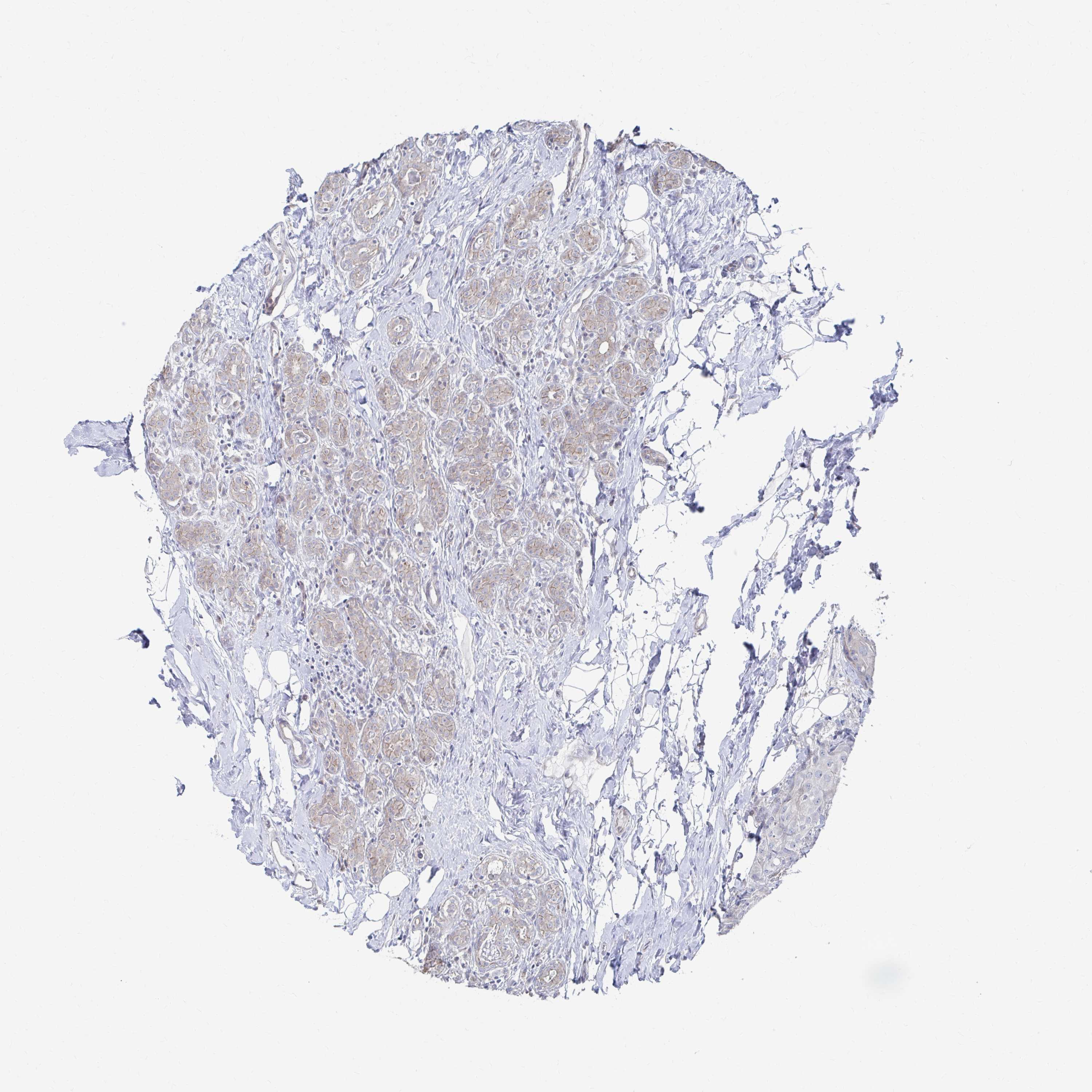Antibody staining in the annotated cell types in the current human tissue is reported as not detected, low, medium, or high, based on conventional immunohistochemistry profiling in selected tissues. This score is based on the combination of the staining intensity and fraction of stained cells.