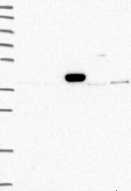 A Western blot analysis is performed on a panel of human tissues and cell lines to evaluate antibody specificity. For antibodies with unreliable result a revalidation using an over-expression lysate is performed.