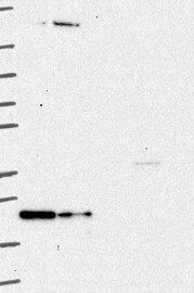 A Western blot analysis is performed on a panel of human tissues and cell lines to evaluate antibody specificity. For antibodies with unreliable result a revalidation using an over-expression lysate is performed.