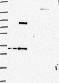 A Western blot analysis is performed on a panel of human tissues and cell lines to evaluate antibody specificity. For antibodies with unreliable result a revalidation using an over-expression lysate is performed.