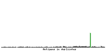 At the top of the view, the position of the antigen (identified by the corresponding HPA identifier) is shown as a green bar. A yellow triangle on the bar indicates a <100% sequence identity to the protein target.