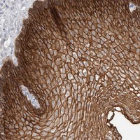 Enhanced validation results in the score Enhanced and includes two methods: Orthogonal validation and Independent antibody validation. For orthogonal validation, representative images of high and low expression are shown. For independent antibody validation, four images of each independent antibody are displayed.