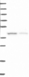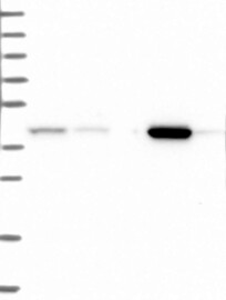 A Western blot analysis is performed on a panel of human tissues and cell lines to evaluate antibody specificity. For antibodies with unreliable result a revalidation using an over-expression lysate is performed.