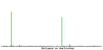 At the top of the view, the position of the antigen (identified by the corresponding HPA identifier) is shown as a green bar. A yellow triangle on the bar indicates a <100% sequence identity to the protein target.