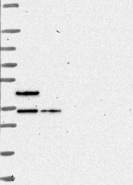 A Western blot analysis is performed on a panel of human tissues and cell lines to evaluate antibody specificity. For antibodies with unreliable result a revalidation using an over-expression lysate is performed.
