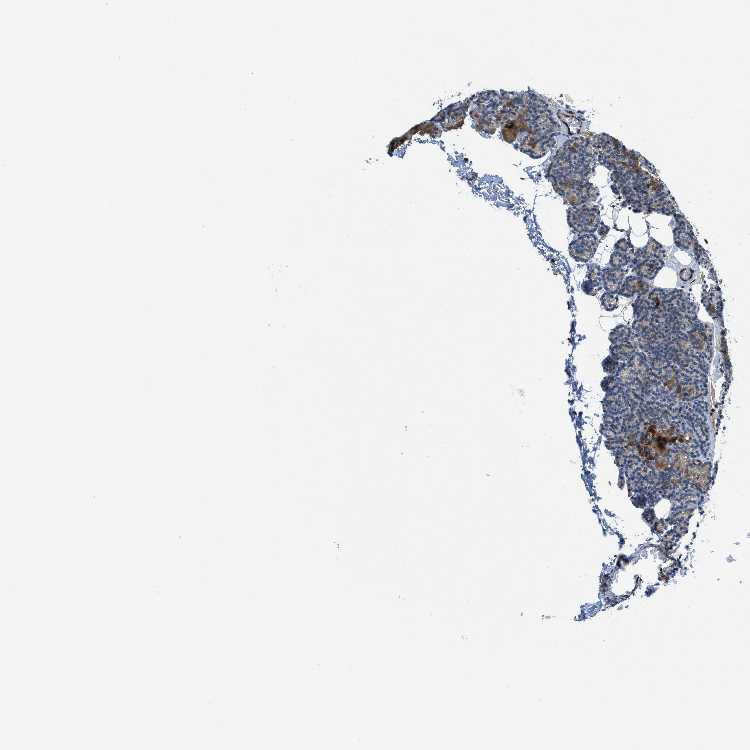 Antibody staining in the annotated cell types in the current human tissue is reported as not detected, low, medium, or high, based on conventional immunohistochemistry profiling in selected tissues. This score is based on the combination of the staining intensity and fraction of stained cells.