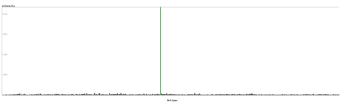 The curve in blue displays the predicted antigenicity i.e. the tendency for different regions of the protein to generate an immune response, with peak regions being predicted to be more antigenic.The curve shows average values based on a sliding window approach using an in-house propensity scale. (read more).