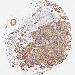 Antibody staining in the annotated cell types in the current human tissue is reported as not detected, low, medium, or high, based on conventional immunohistochemistry profiling in selected tissues. This score is based on the combination of the staining intensity and fraction of stained cells.