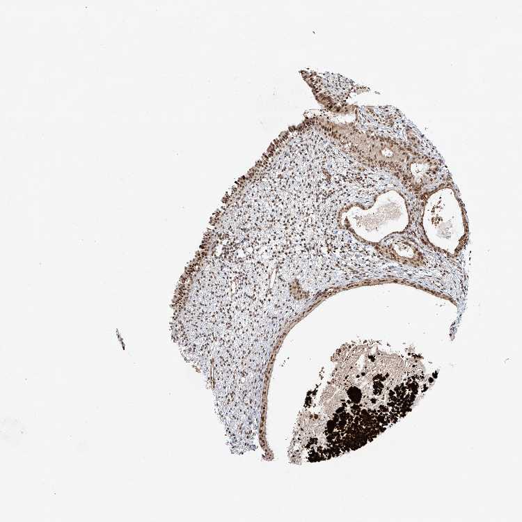 Antibody staining in the annotated cell types in the current human tissue is reported as not detected, low, medium, or high, based on conventional immunohistochemistry profiling in selected tissues. This score is based on the combination of the staining intensity and fraction of stained cells.