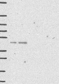 A Western blot analysis is performed on a panel of human tissues and cell lines to evaluate antibody specificity. For antibodies with unreliable result a revalidation using an over-expression lysate is performed.