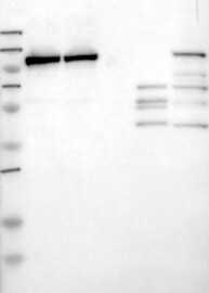 Antibody band pattern is confirmed by antibody HPA002529. Analysis performed using a standard panel of samples.