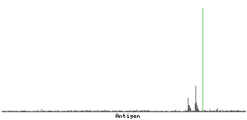The curve in blue displays the predicted antigenicity i.e. the tendency for different regions of the protein to generate an immune response, with peak regions being predicted to be more antigenic.The curve shows average values based on a sliding window approach using an in-house propensity scale. (read more).
