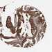 Antibody staining in the annotated cell types in the current human tissue is reported as not detected, low, medium, or high, based on conventional immunohistochemistry profiling in selected tissues. This score is based on the combination of the staining intensity and fraction of stained cells.