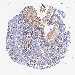 Antibody staining in the annotated cell types in the current human tissue is reported as not detected, low, medium, or high, based on conventional immunohistochemistry profiling in selected tissues. This score is based on the combination of the staining intensity and fraction of stained cells.