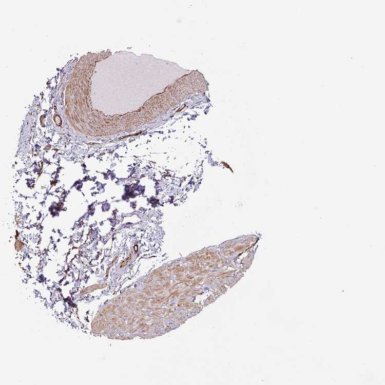 Antibody staining in the annotated cell types in the current human tissue is reported as not detected, low, medium, or high, based on conventional immunohistochemistry profiling in selected tissues. This score is based on the combination of the staining intensity and fraction of stained cells.