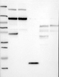 A Western blot analysis is performed on a panel of human tissues and cell lines to evaluate antibody specificity. For antibodies with unreliable result a revalidation using an over-expression lysate is performed.