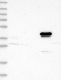A Western blot analysis is performed on a panel of human tissues and cell lines to evaluate antibody specificity. For antibodies with unreliable result a revalidation using an over-expression lysate is performed.
