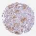 Antibody staining in the annotated cell types in the current human tissue is reported as not detected, low, medium, or high, based on conventional immunohistochemistry profiling in selected tissues. This score is based on the combination of the staining intensity and fraction of stained cells.