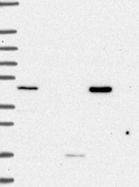 A Western blot analysis is performed on a panel of human tissues and cell lines to evaluate antibody specificity. For antibodies with unreliable result a revalidation using an over-expression lysate is performed.