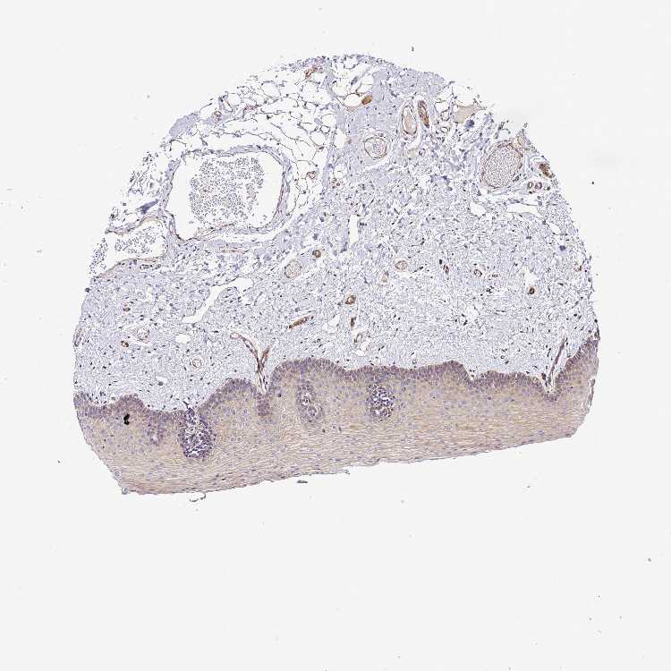 Antibody staining in the annotated cell types in the current human tissue is reported as not detected, low, medium, or high, based on conventional immunohistochemistry profiling in selected tissues. This score is based on the combination of the staining intensity and fraction of stained cells.
