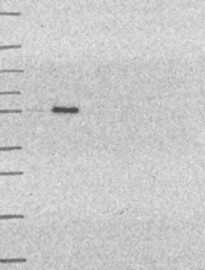 A Western blot analysis is performed on a panel of human tissues and cell lines to evaluate antibody specificity. For antibodies with unreliable result a revalidation using an over-expression lysate is performed.