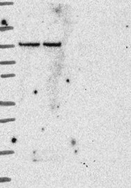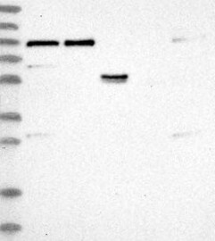 A Western blot analysis is performed on a panel of human tissues and cell lines to evaluate antibody specificity. For antibodies with unreliable result a revalidation using an over-expression lysate is performed.