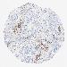 Antibody staining in the annotated cell types in the current human tissue is reported as not detected, low, medium, or high, based on conventional immunohistochemistry profiling in selected tissues. This score is based on the combination of the staining intensity and fraction of stained cells.