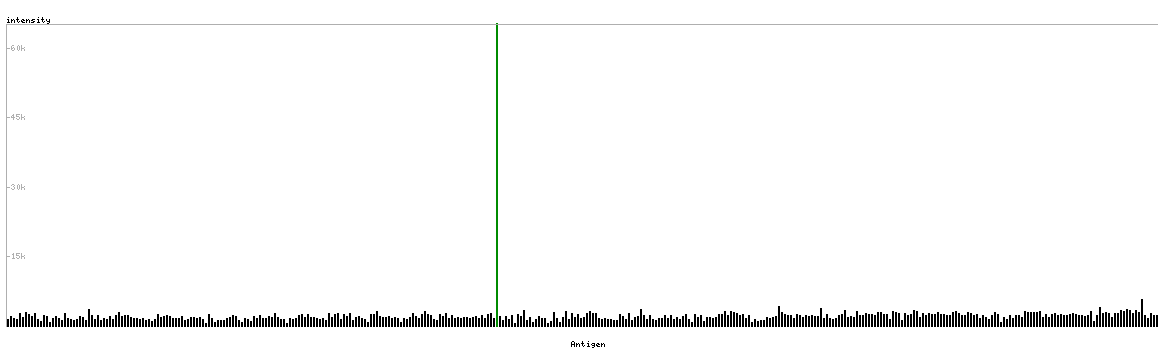 The curve in blue displays the predicted antigenicity i.e. the tendency for different regions of the protein to generate an immune response, with peak regions being predicted to be more antigenic.The curve shows average values based on a sliding window approach using an in-house propensity scale. (read more).
