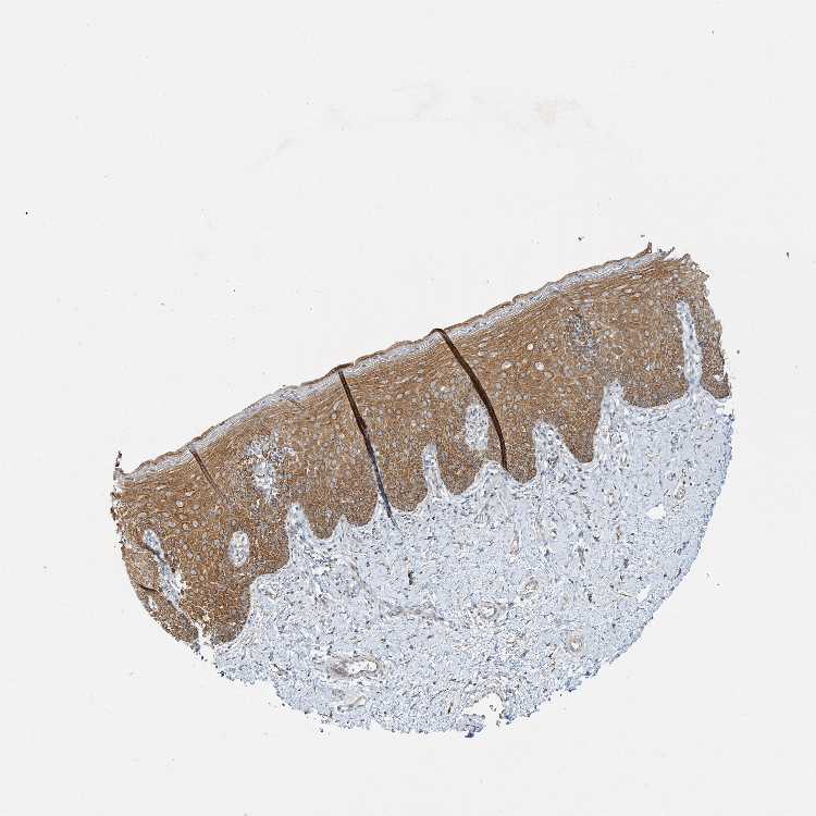 Antibody staining in the annotated cell types in the current human tissue is reported as not detected, low, medium, or high, based on conventional immunohistochemistry profiling in selected tissues. This score is based on the combination of the staining intensity and fraction of stained cells.