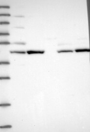 A Western blot analysis is performed on a panel of human tissues and cell lines to evaluate antibody specificity. For antibodies with unreliable result a revalidation using an over-expression lysate is performed.