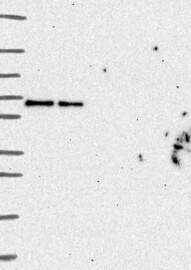 A Western blot analysis is performed on a panel of human tissues and cell lines to evaluate antibody specificity. For antibodies with unreliable result a revalidation using an over-expression lysate is performed.