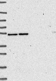 A Western blot analysis is performed on a panel of human tissues and cell lines to evaluate antibody specificity. For antibodies with unreliable result a revalidation using an over-expression lysate is performed.