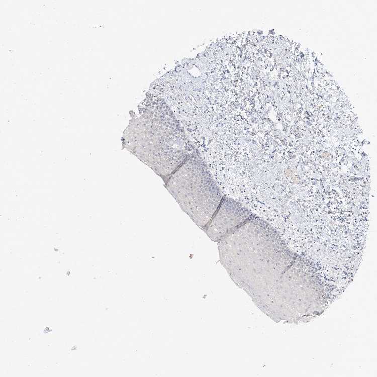 Antibody staining in the annotated cell types in the current human tissue is reported as not detected, low, medium, or high, based on conventional immunohistochemistry profiling in selected tissues. This score is based on the combination of the staining intensity and fraction of stained cells.