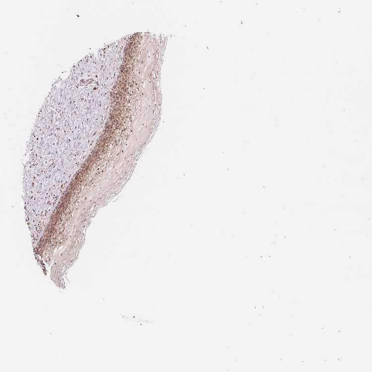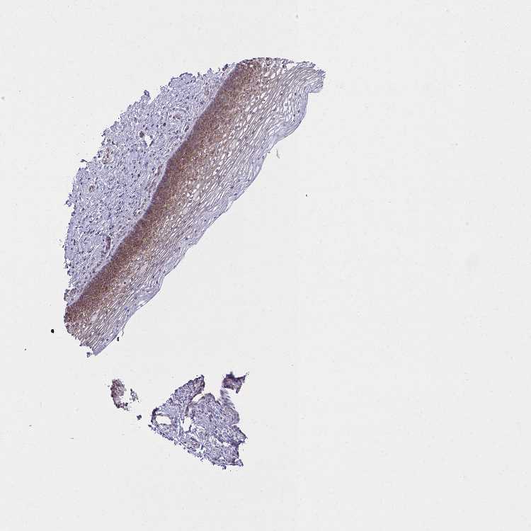Antibody staining in the annotated cell types in the current human tissue is reported as not detected, low, medium, or high, based on conventional immunohistochemistry profiling in selected tissues. This score is based on the combination of the staining intensity and fraction of stained cells.