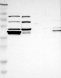 A Western blot analysis is performed on a panel of human tissues and cell lines to evaluate antibody specificity. For antibodies with unreliable result a revalidation using an over-expression lysate is performed.