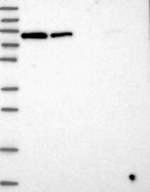 A Western blot analysis is performed on a panel of human tissues and cell lines to evaluate antibody specificity. For antibodies with unreliable result a revalidation using an over-expression lysate is performed.