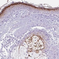 Enhanced validation results in the score Enhanced and includes two methods: Orthogonal validation and Independent antibody validation. For orthogonal validation, representative images of high and low expression are shown. For independent antibody validation, four images of each independent antibody are displayed.