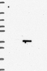 A Western blot analysis is performed on a panel of human tissues and cell lines to evaluate antibody specificity. For antibodies with unreliable result a revalidation using an over-expression lysate is performed.