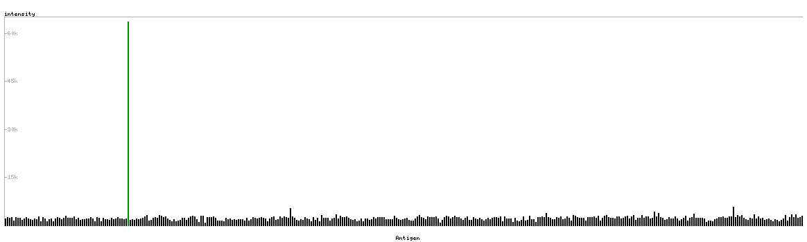 The curve in blue displays the predicted antigenicity i.e. the tendency for different regions of the protein to generate an immune response, with peak regions being predicted to be more antigenic.The curve shows average values based on a sliding window approach using an in-house propensity scale. (read more).