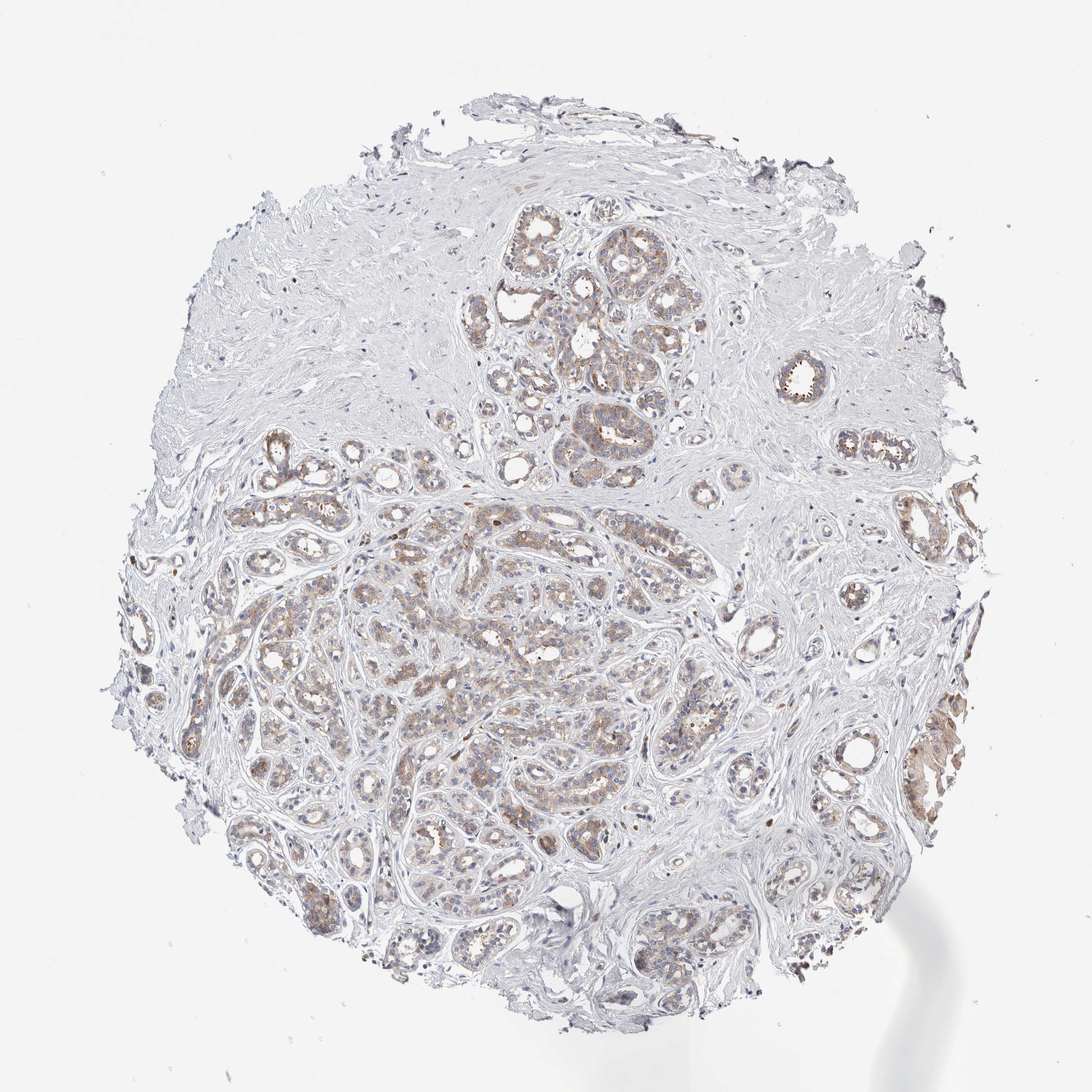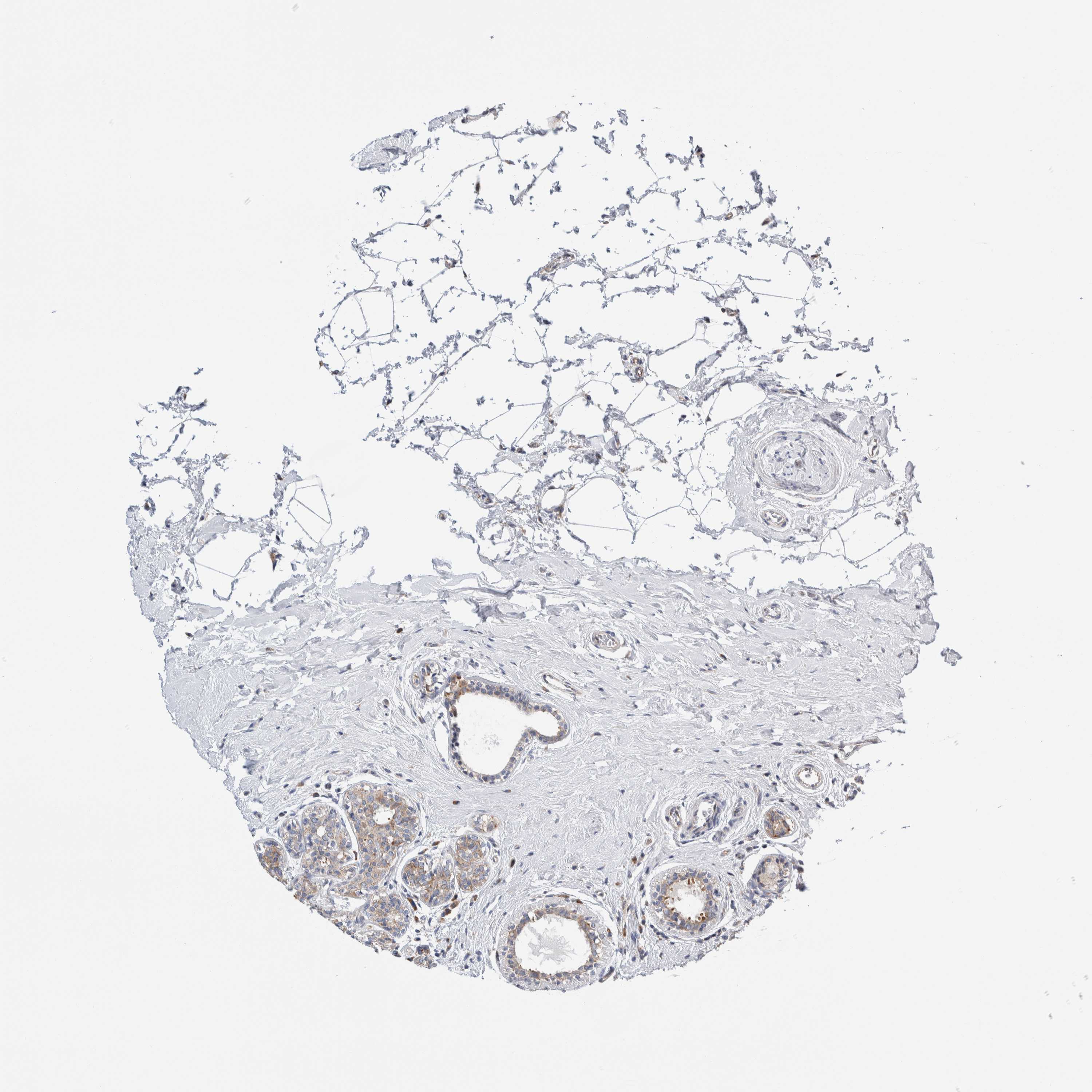 Antibody staining in the annotated cell types in the current human tissue is reported as not detected, low, medium, or high, based on conventional immunohistochemistry profiling in selected tissues. This score is based on the combination of the staining intensity and fraction of stained cells.