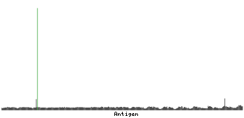 At the top of the view, the position of the antigen (identified by the corresponding HPA identifier) is shown as a green bar. A yellow triangle on the bar indicates a <100% sequence identity to the protein target.