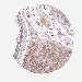 Antibody staining in the annotated cell types in the current human tissue is reported as not detected, low, medium, or high, based on conventional immunohistochemistry profiling in selected tissues. This score is based on the combination of the staining intensity and fraction of stained cells.