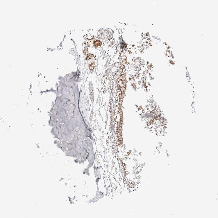 Antibody staining in the annotated cell types in the current human tissue is reported as not detected, low, medium, or high, based on conventional immunohistochemistry profiling in selected tissues. This score is based on the combination of the staining intensity and fraction of stained cells.