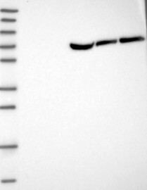 A Western blot analysis is performed on a panel of human tissues and cell lines to evaluate antibody specificity. For antibodies with unreliable result a revalidation using an over-expression lysate is performed.